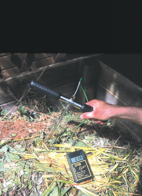 Sehr robuste, praxisnahe Konstruktion eines Einstechthermo-meters für Messungen in Böden, Kompostierungen, Stroh, Schüttgütern, Heu, etc.
