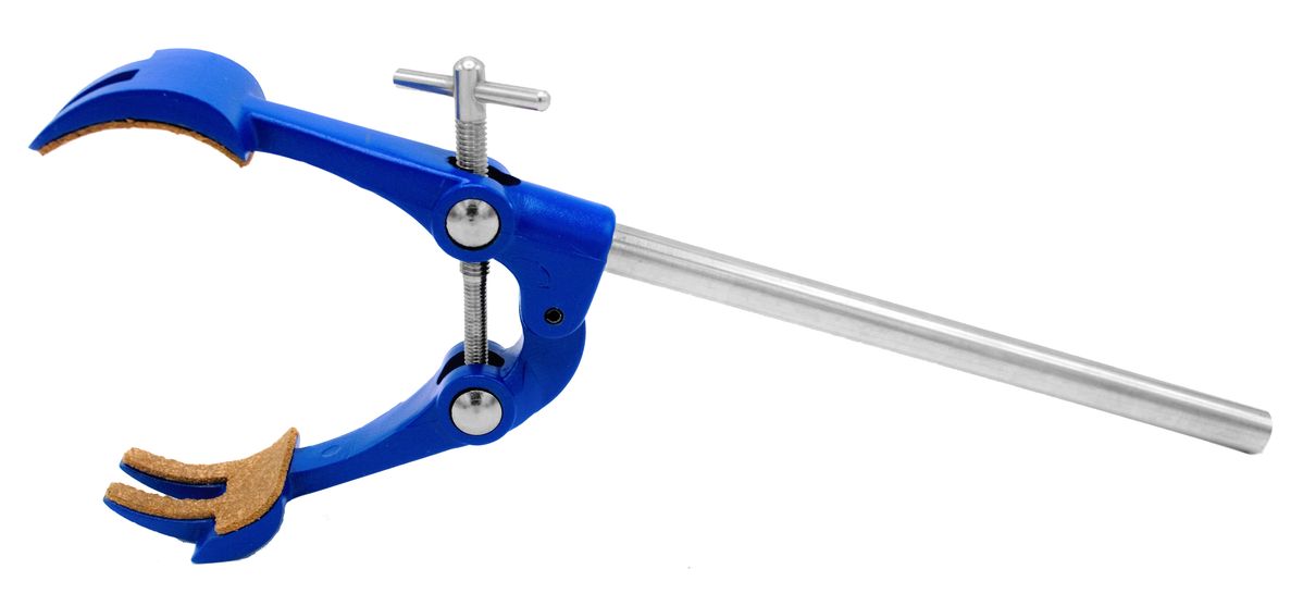 Klemme mit Pulverbeschichteter Aluminiumlegierung, Spannbereich bis 80mm.Stativstab aus Edelstahl 10mm, Klemmbacken mit Kork.