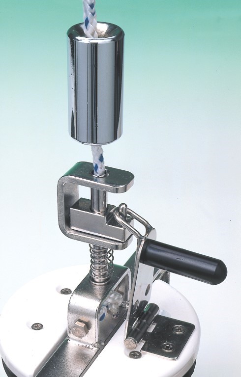 Der Probenehmer wird geöffnet herabgelassen, bis zur gewünschten Tiefe. Dann wird der Beschwerungskörper (siehe Detail-Bild) am Seil herabgelassen, trifft auf das Federteil womit der Verschlussmechanismus aktiviert wird und den Behälter abdichtet.