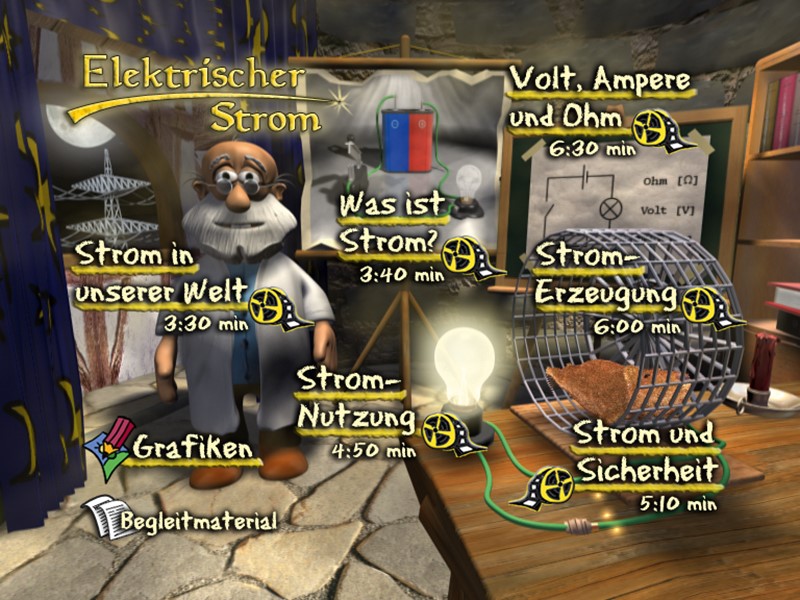 6 Filme rund um die Energiephänomene „Elektrizität & Strom“, Professor Lunatus begleitet die SchülerInnen auf ihrer Entdeckungsreise.