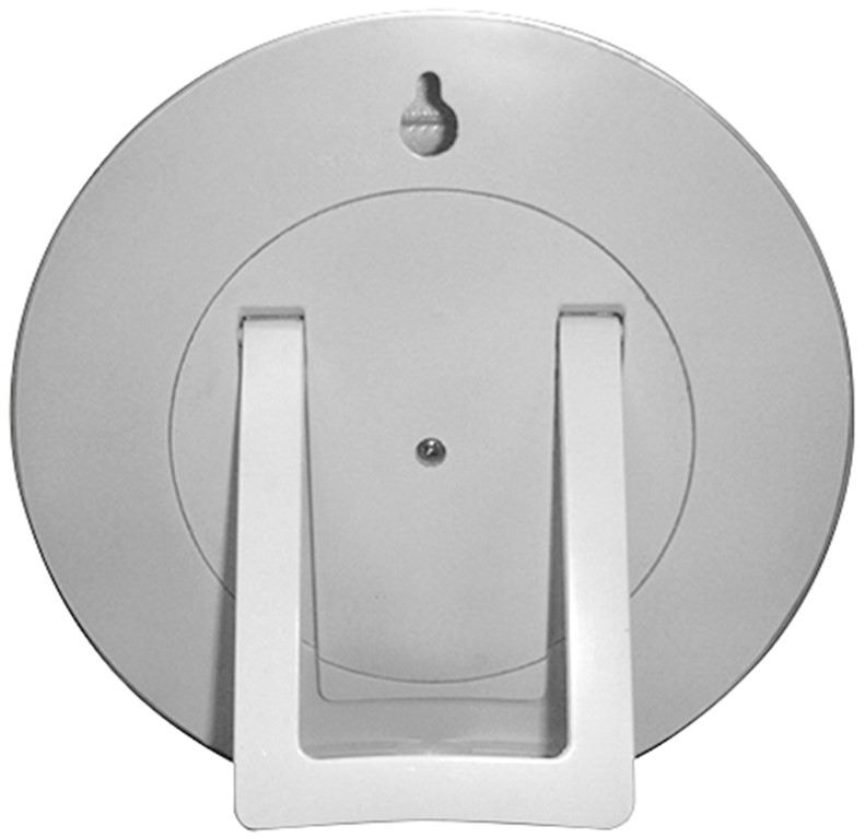 Gehäuse aus Kunststoff mit Standfuß und Aufhängemöglichkeit.