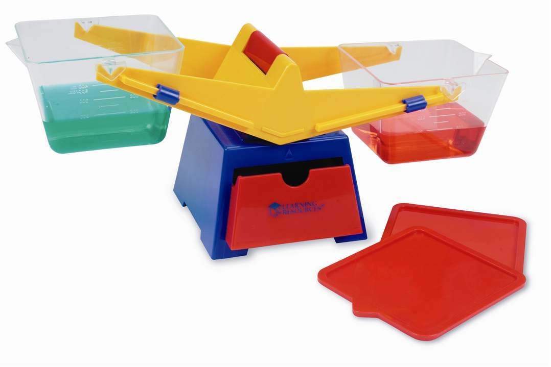 robuste Kunststoffwaage mit zwei graduierten 400ml Behältern als Waagschale. Mit Schublade. 42x16.5 cm