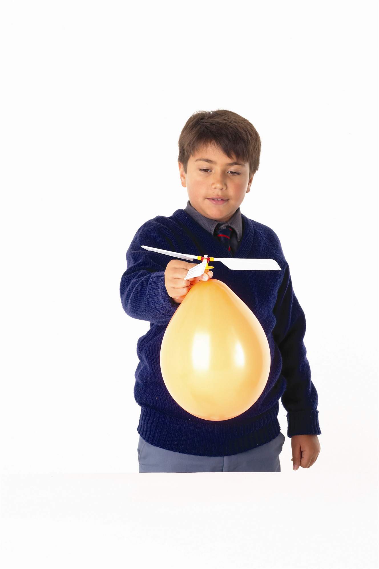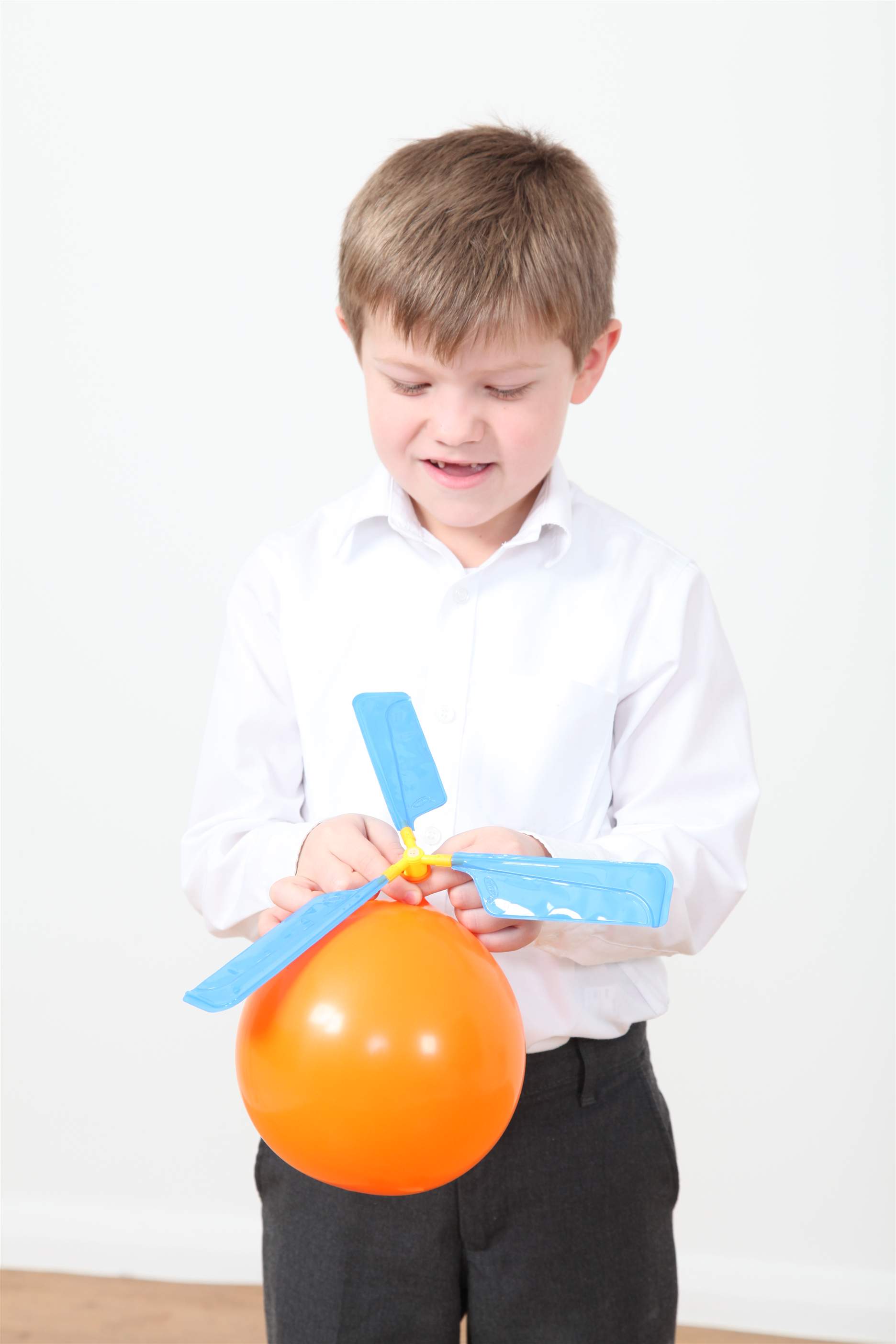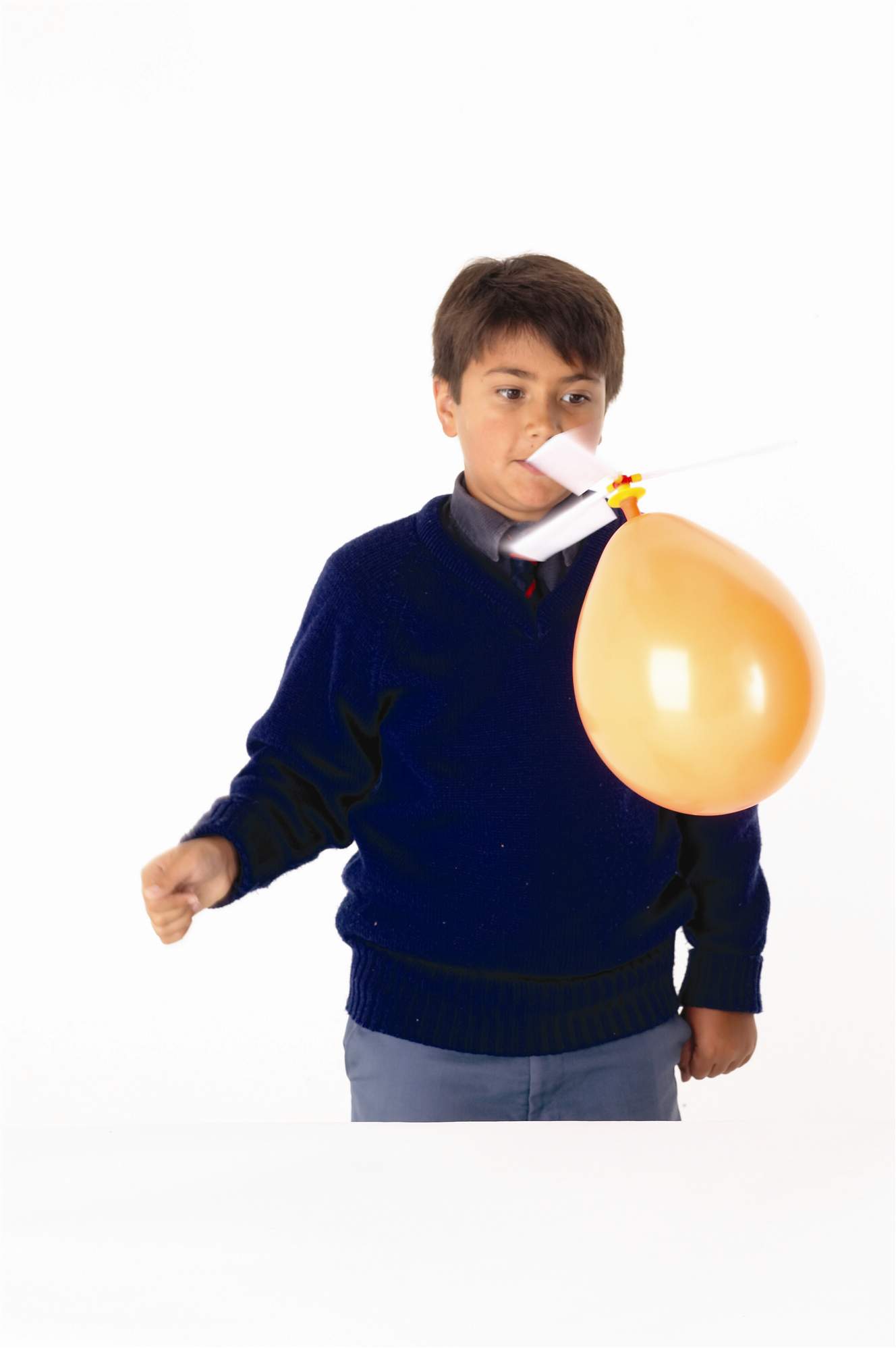 Die entweichende Luft aus dem Ballon bringt die Propeller zum rotieren, der Luftballon fliegt.