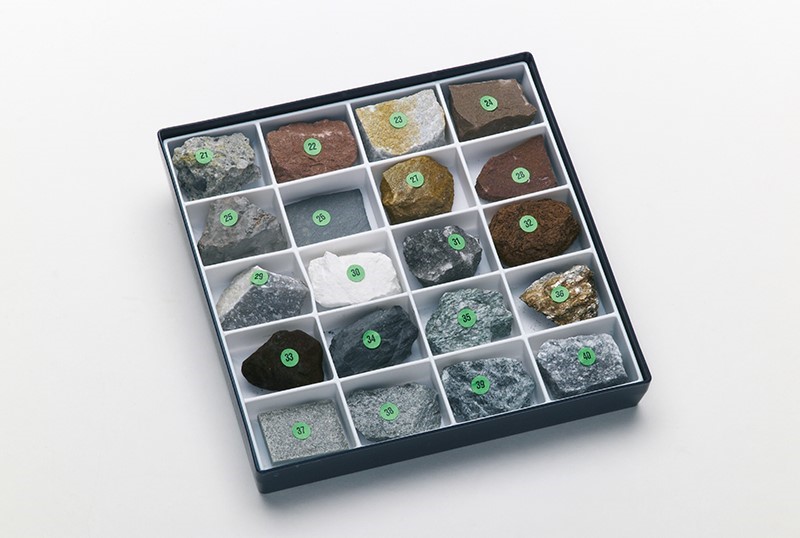 10 gesteinsbildende Mineralien und 30 Gesteine