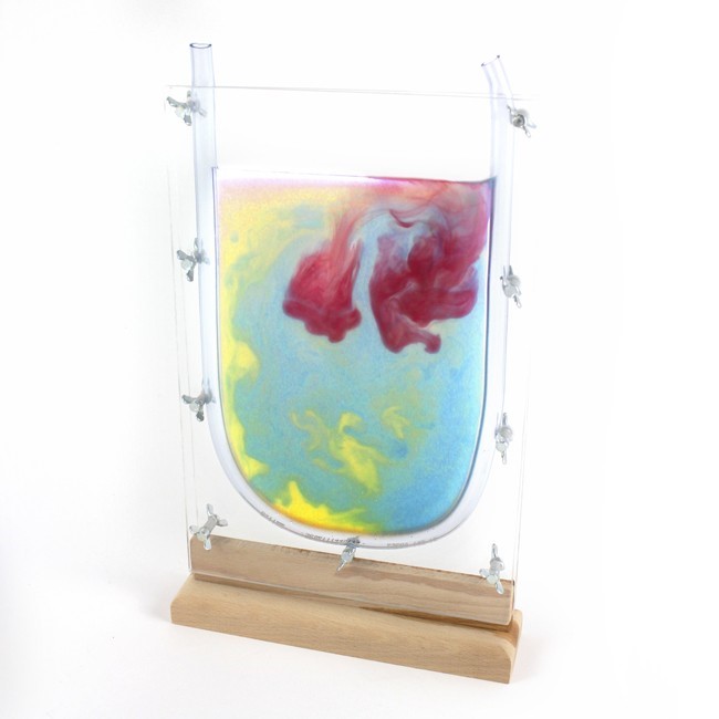 Der einfache Versuchsaufbau mit der Küvette XXL besteht in der Grundausstattung aus zwei Scheiben Acrylglas. Der Reaktionsraum wird durch einen transparenten Schlauch gebildet der von neun Flügelmuttern fixiert wird. Die Küvette steht stabil in einem Ständer. Das praktische Schraubsystem ermöglicht die Scheiben nach dem Versuch einfach und schnell zu reinigen (spülmaschinengeeignet). Der zusätzliche Deckel ermöglicht das Experimentieren mit Schüttgütern.