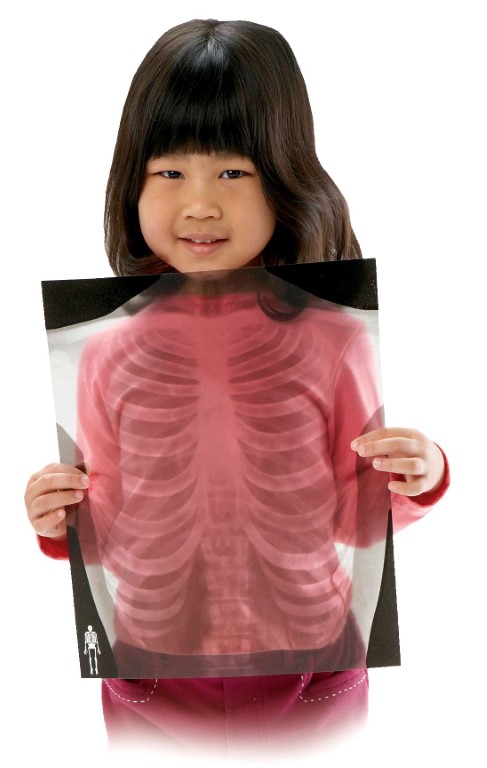 Die Röntgenbilder zeigen das Skelett-System eines jungen Erwachsenen von 1,50 m Größe. Die transparenten Bilder können an die Fensterscheibe geklebt oder auch auf den OHP gelegt werden. Das Skelett besteht aus 18 Einzelbildern (bis max. 34 bis 30 cm), die durch die Schüler zusammengesetzt werden.