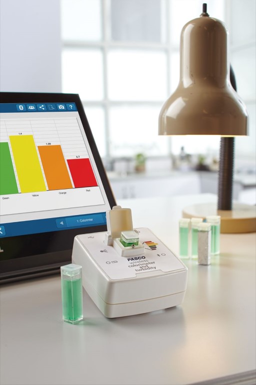 Das Farb- und Trübungsmessgerät misst gleichzeitig die Absorption und Transmission von sechs verschiedenen Wellenlängen. Mit ihm können Enzymaktivität, Photosynthese und die Geschwindigkeit chemischer Reaktionen untersucht werden. Durch die Verwendung der Zubehörküvetten und eines Kalibrierstandards fungiert das Farbmessgerät auch als Trübungsmessgerät für die Wasserqualitätsanalyse. Dank kabellosem, robusten Design kann das Gerät sehr einfach mit ins Feld genommen werden. Das Gerät verfügt über einen eingebauten Lithium-Polymer-Akku.