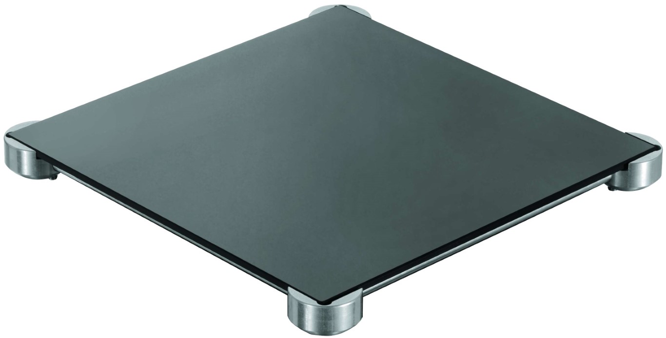 Rostfreier Vierfuß komplett mit Glaskeramik Platte, mit abschraubbaren Beinen.