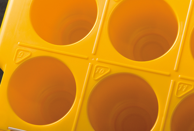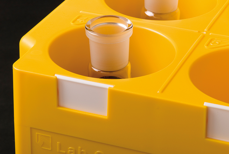 Unsere Rundkolben- Trägergestelle bieten Ihnen Sicherheit, Ordnung und Variabilität. Die Rundkolben stehen somit sicherer, als bei der Aufbewahrung in Korkringen. Zwei Volumen größen können flexibel in einem Trägergestell eingesetzt werden.