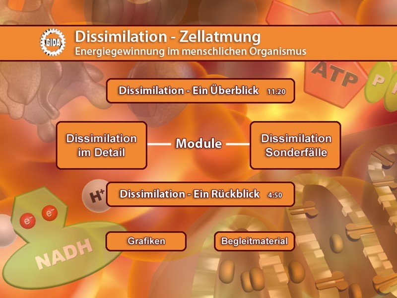 8 Filme zeigen die biochemischen Abläufe der Dissimilation.