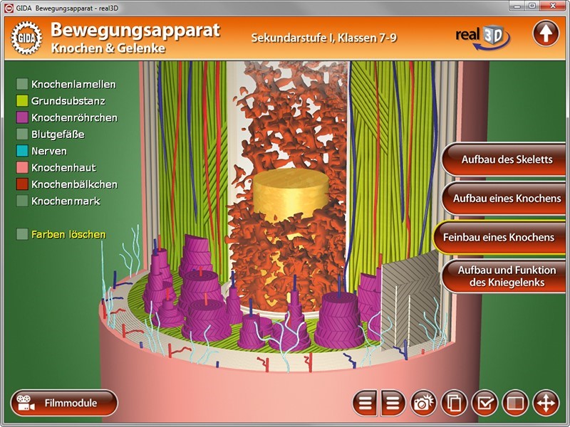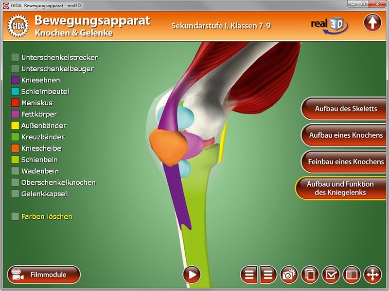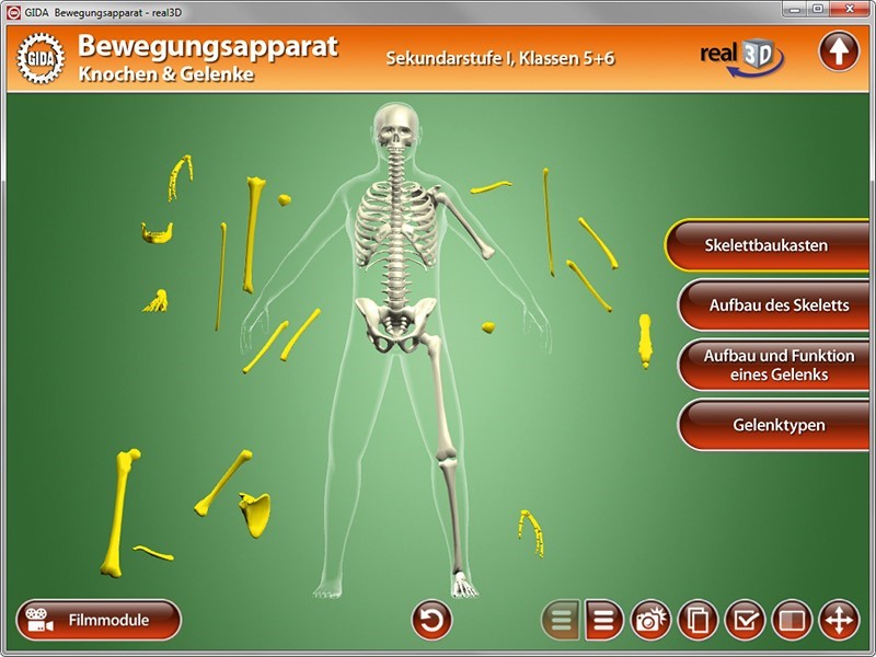 Die real3D-Software gibt Ihnen größtmögliche Freiheit in der Bearbeitung des Themas „Bewegungsapparat – Knochen & Gelenke“ und