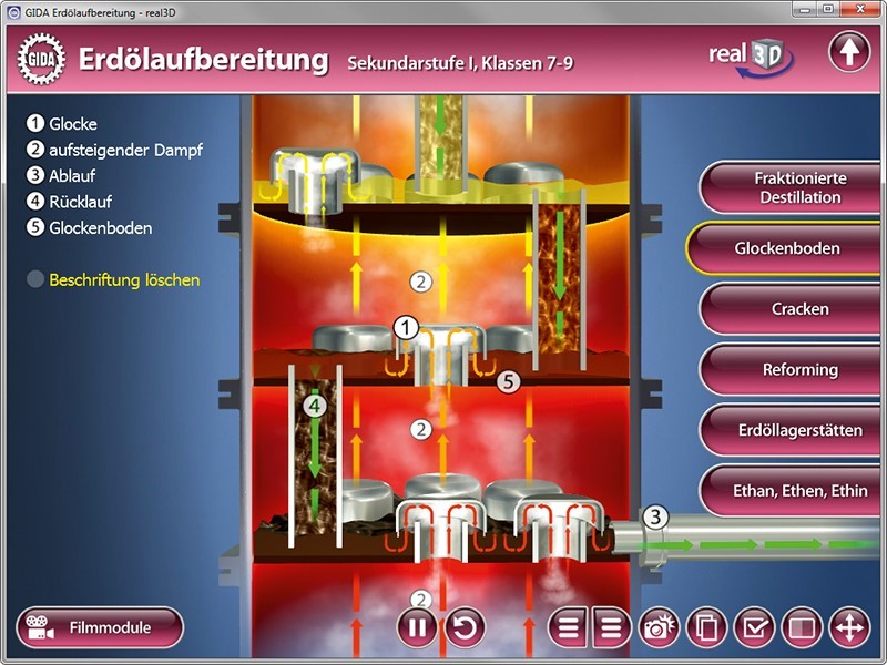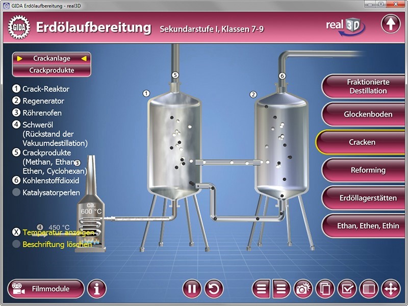Die real3D-Software gibt Ihnen größtmögliche Freiheit in der Bearbeitung des Themas „Erdölaufbereitung“und unterstützt