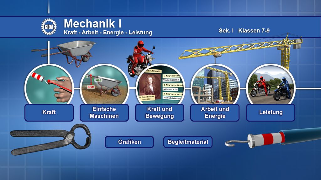 5 Filme über die zentralen Begriffe der Mechanik und ihre Zusammenhänge.