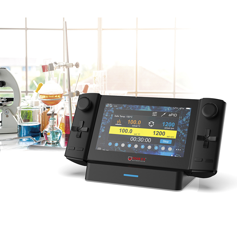 Mit der Steuereinheit und seinem 7“-Bildschirm können Rührgeschwindigkeit, Temperatur und Zeit bei jedem Magnetrührwerk individuell eingestellt werden (oder auch gleiche Einstellungen).