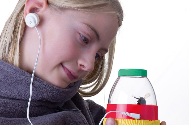 Das deutlich zu hörende Krabbeln, Klopfen, Knabbern, Klicken und Zirpen erstaunt jedes Kind. Durch die oben angebrachte Zweifachlupe lässt sich dann sogar erforschen, wie das Geräusch erzeugt wird.