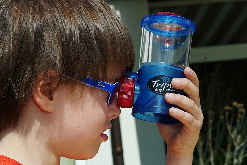 3-teilige Lupe zur Beobachtung von z.B. Blüten, Ameisen, Wassertieren, o.ä. von oben, unten und von vorne.