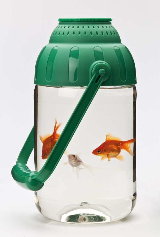 - großer 3 Liter Behälter aus weichem Kunststoff (bricht nicht so leicht) mit Vergrößerungsglas im Deckel