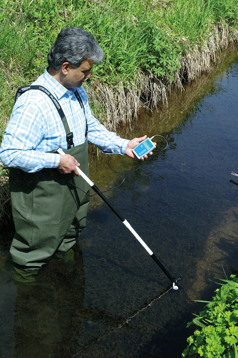 Perfekte Gerätekombination für die Erkundung von Fließgewässern. Neue Geräteversion mit Direktanzeige des Messergebnisses in m / sec.