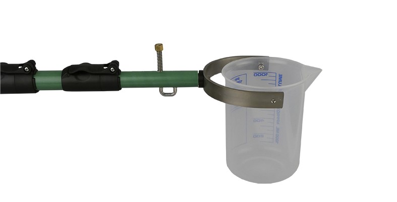 Diese Konstruktion eignet sich hervorragend für tiefe und enge Schächte. Die robuste Bügel/Pendelmechanik ist aus rostfreiem Edelstahl gefertigt. Der ausgeschraubte PP-Becher mit 1000 ml Volumen kann ausgetauscht werden. Mit Universalansatzstück mit Bohrung für den Federmechanismus der WINLAB® Fiberglas-Teleskopstangen.