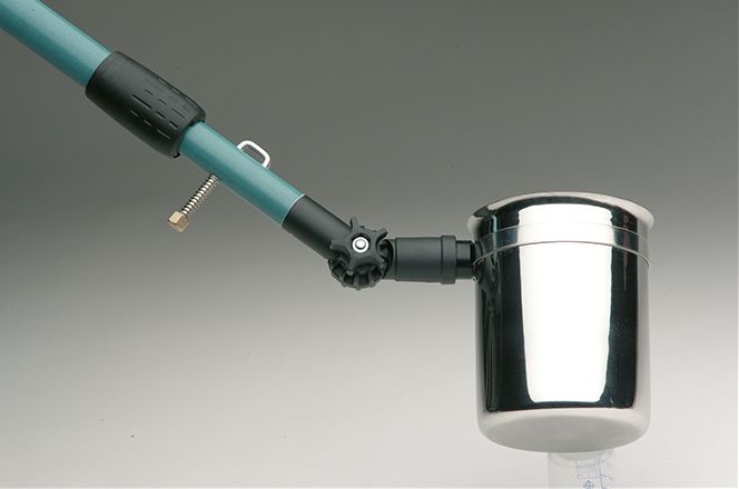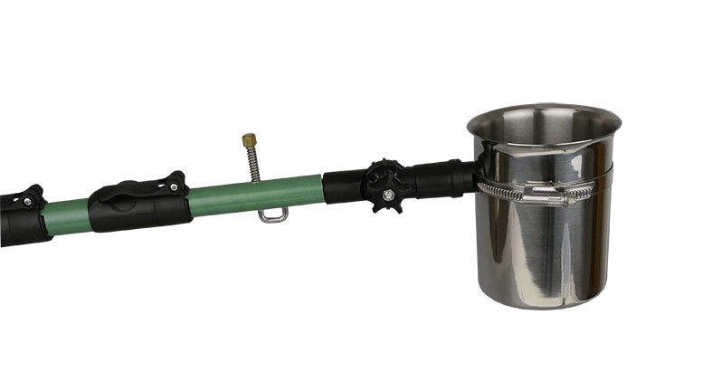 Mit Edelstahl-Probenahmegefäß, als Becher ausgeformt, mit Rand. Mit dem neuen Einrast-Einstellwinkel für die stufenlose Veränderung des Bechers - Neigewinkel von 0 bis 180°C