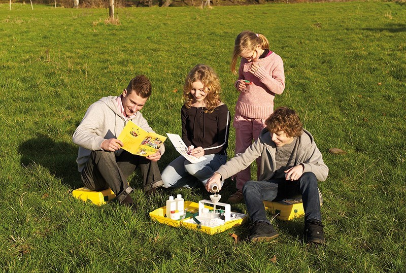 Alle Messungen mit der ECOLABBOX® können direkt draußen am Teich, am Fluss, am Badesee, oder im Garten und am Ackerfeld durchgeführt werden.