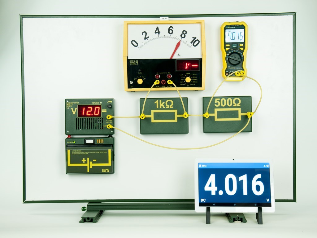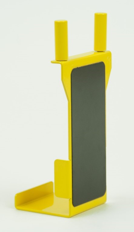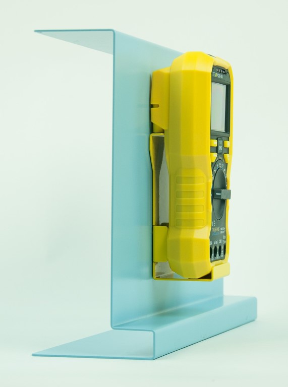 Zur magnethaftenden Halterung des Multimeters an Metalltafeln, dadurch wird eine Einbindung des Messwertes „an der richtigen Stelle“ in ein Experiment ermöglicht; speziell geformter, robuster Metallbügel, pulverbeschichtet gelb.
