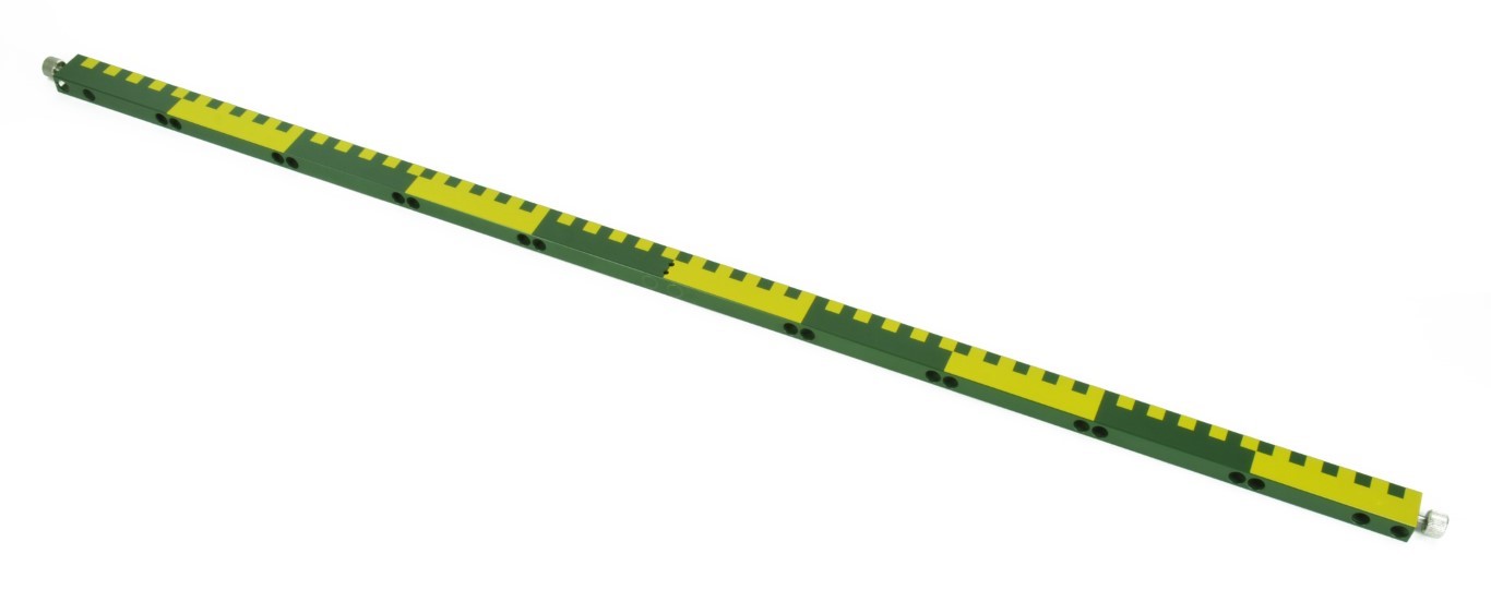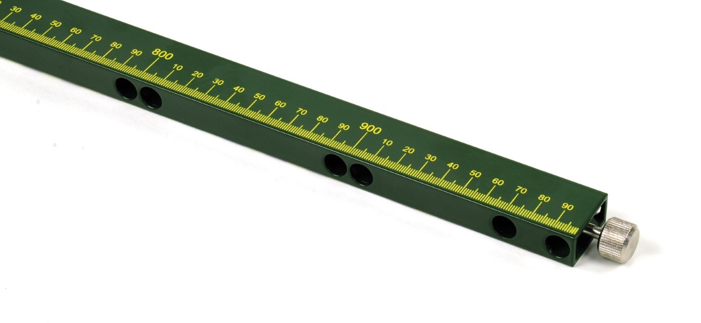 eine Seite weithin sichtbare, übersichtlich gegliederte Blockskala (dm- und cm-Teilung),
