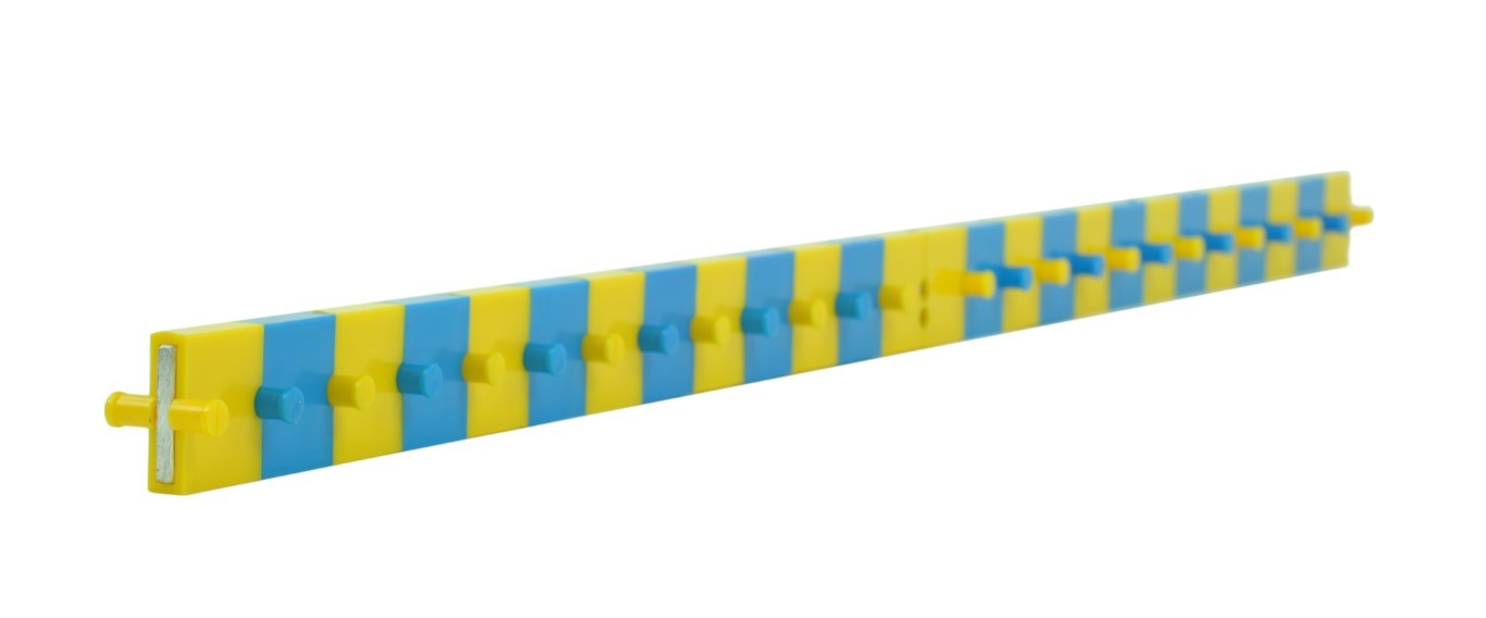 Alu-Vollprofil mit Kunststoffelementen und Noppen zur Halterung von Massen oder Waagschalen,