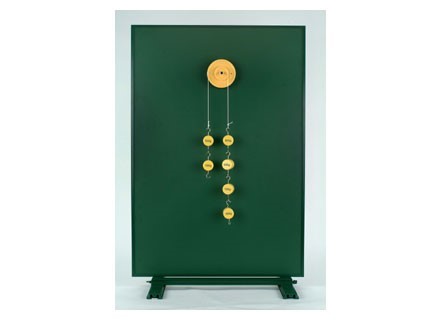 Farbig beschichtete Massestücke mit zwei Haken zum Aneinanderhängen,