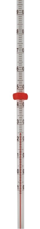 Alkoholgefüllt, mit verschiebbarem Silikondreieck (Thermometer kann dadurch nicht vom Tisch rollen),