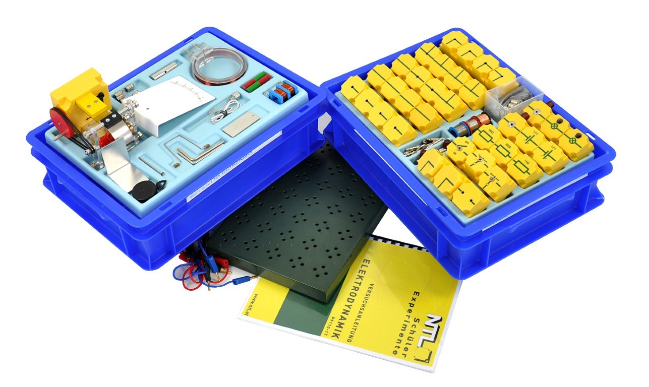 Schülerversuchs-Gerätesatz zur Durchführung von 11 Versuchen aus der Elektrizitätslehre - Elektrodynamik zu den Themen: