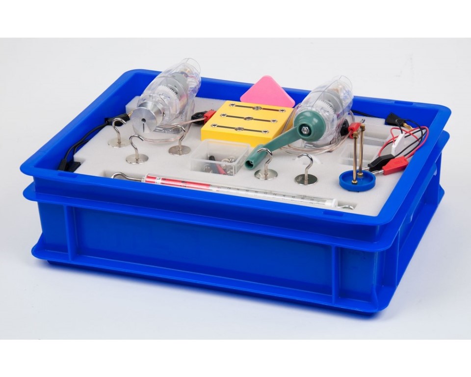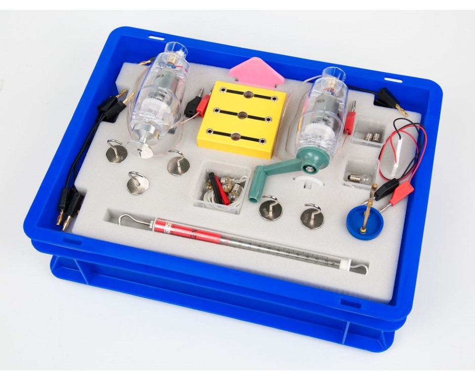 Schülerversuchs-Gerätesatz zur Durchführung von 13 Versuchen aus der Elektrizitätslehre - Leistung, Arbeit und Wirkungsgrad zu den Themen: