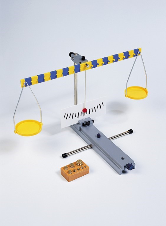 Alu-Vollprofil mit Kunststoff-Elementen und Noppen zur Halterung von Massen oder Waagschalen,