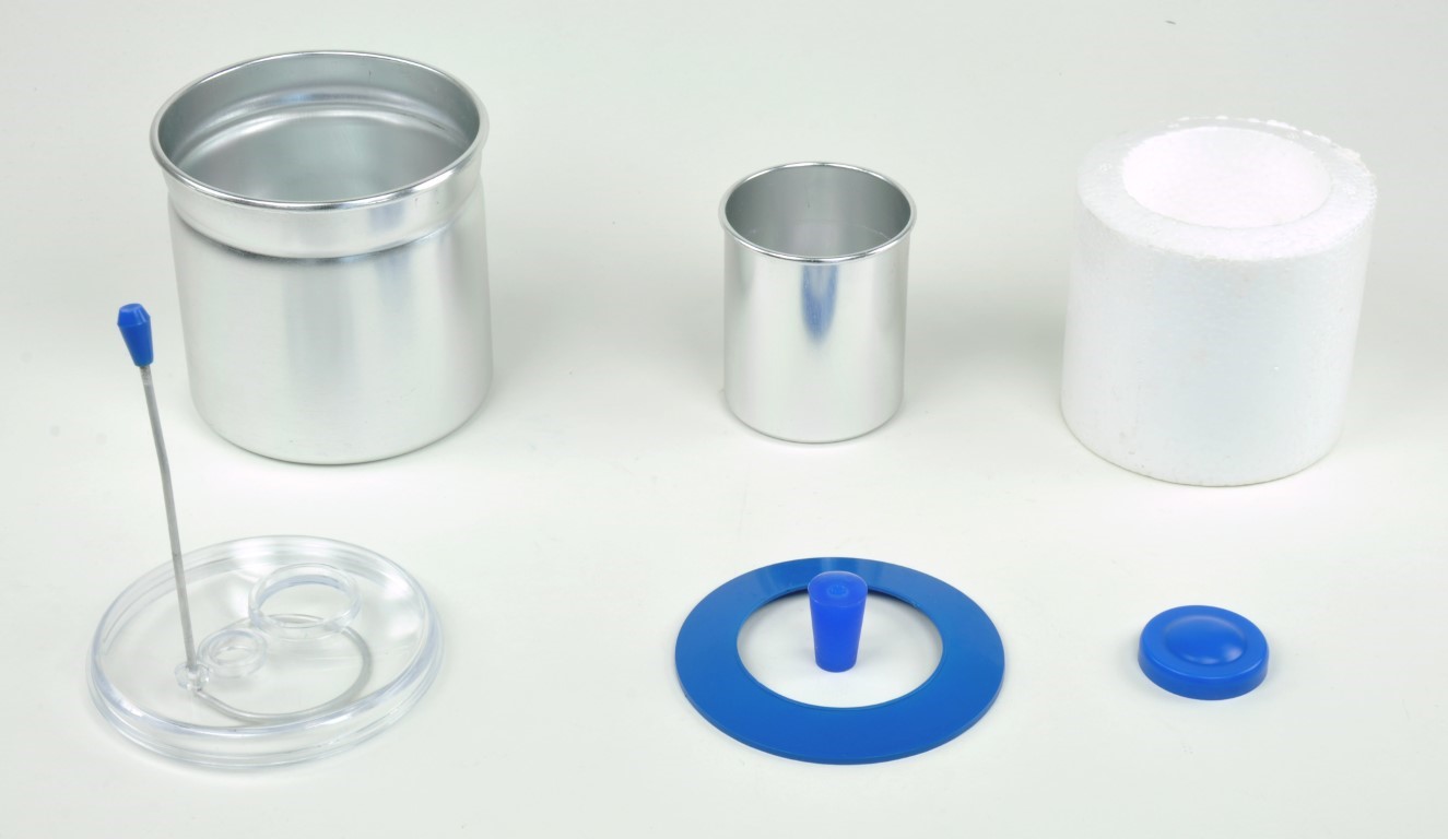 Bestehend aus 2 Alu-Bechern, dazwischen ein Isolierbehälter;