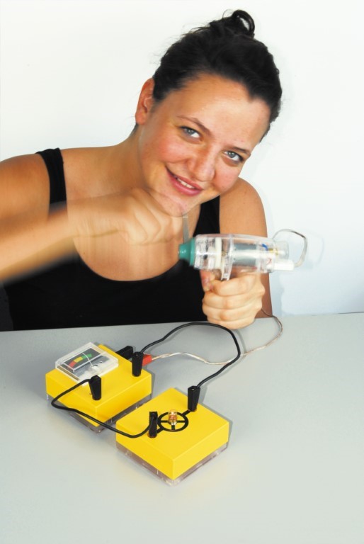 ⇒ einfach - schnell - sicher - Motor-Generator-Baustein: in Verbindung mit dem eigens entwickelten Propeller kann nur durch Pusten eine Glühlampe zum Leuchten gebracht werden