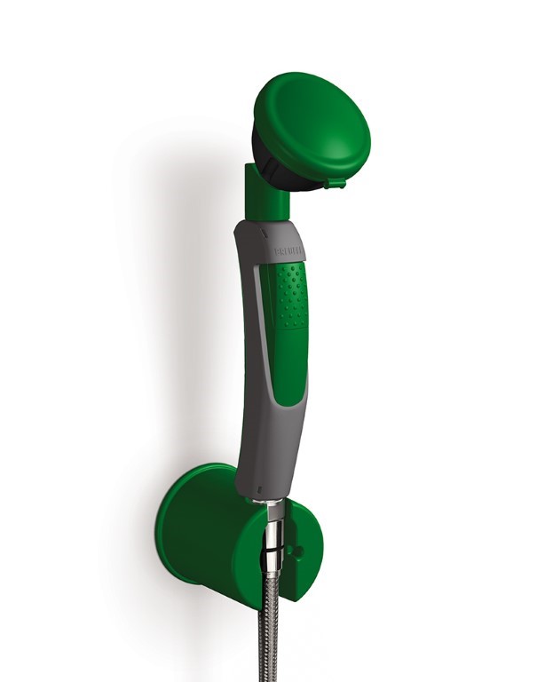 mit arretierendem Auslösehebel und 1 Duschkopf 45° abgewinkelt für gezielten Einsatz! Durch die Einhandbetätigung hat man im Ernstfall die andere Hand frei. Inkl. 1500 mm edelstahlummantelten Silikonschlauch, mit 1/2 Zoll Überwurfmutter, eingebautem Durchflussmengenbegrenzer und Rückflussverhinderer, sowie selbst- klebendes Hinweisschild. Durch den 1500 mm langen Schlauch kann die Augendusche auch zu einer liegenden Person geführt werden. Die Dusche kann auch in der Wandhalterung betrieben werden, stabile Wandhalterung hält die Dusche immer in Richtung des Anwenders.
