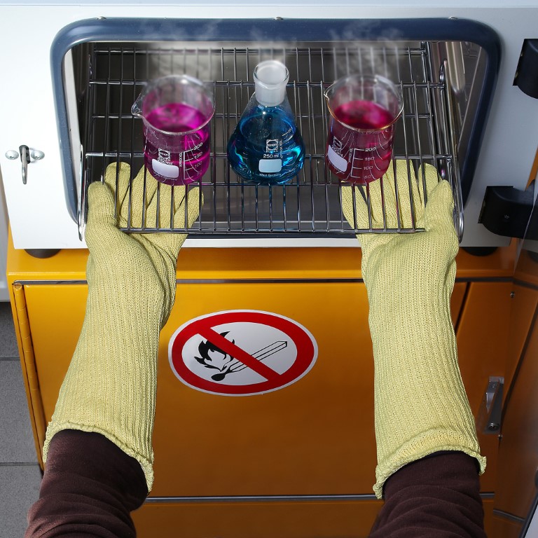 Kevlar ist ein Werkstoff mit universellen Eigenschaften. Er hält sehr hohen  thermischen Belastungen stand. Er bietet Hitzeschutz bis ca. 300 °C (Kontakthitze)  bzw. 450-500°C(Strahlungshitze). Darüberhinaus bietet dieser Kevlar-Schutzhandschuh,  Schutz vor mechanischer Beanspruchung und vor allem einen sehr guten Schutz gegen  Schnitt- und Stichverletzungen. Als Doppelstrick-Handschuh (Zweilagen) gefertigt!